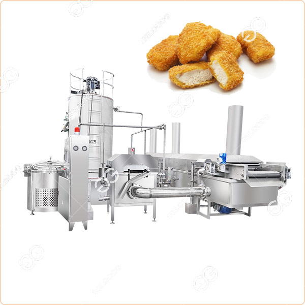 La machine à frire les nuggets de poulet peut être utilisée pour la friture en continu de produits panés ou enrobés de pâte, tels que les nuggets de poulet, les morceaux de poulet panés et les lanières de poulet.